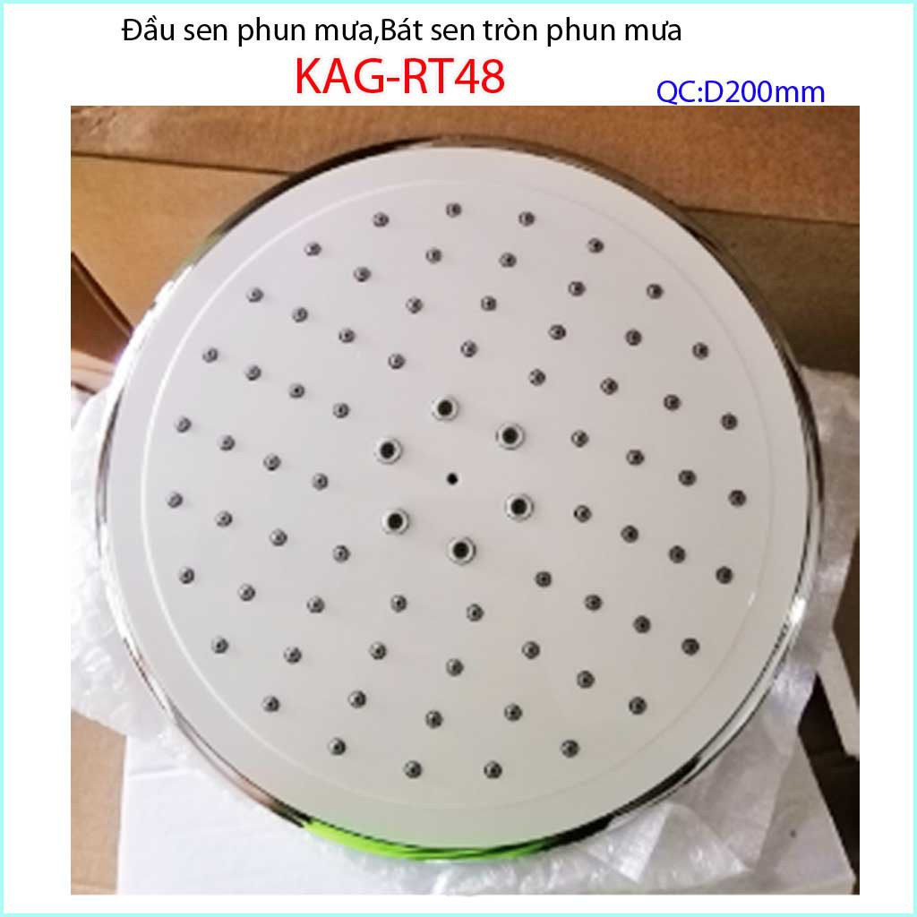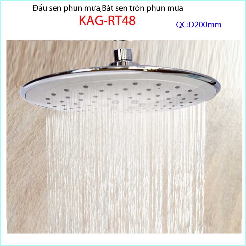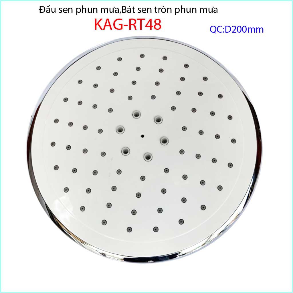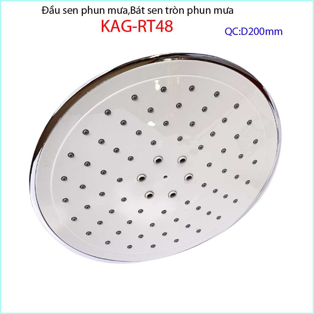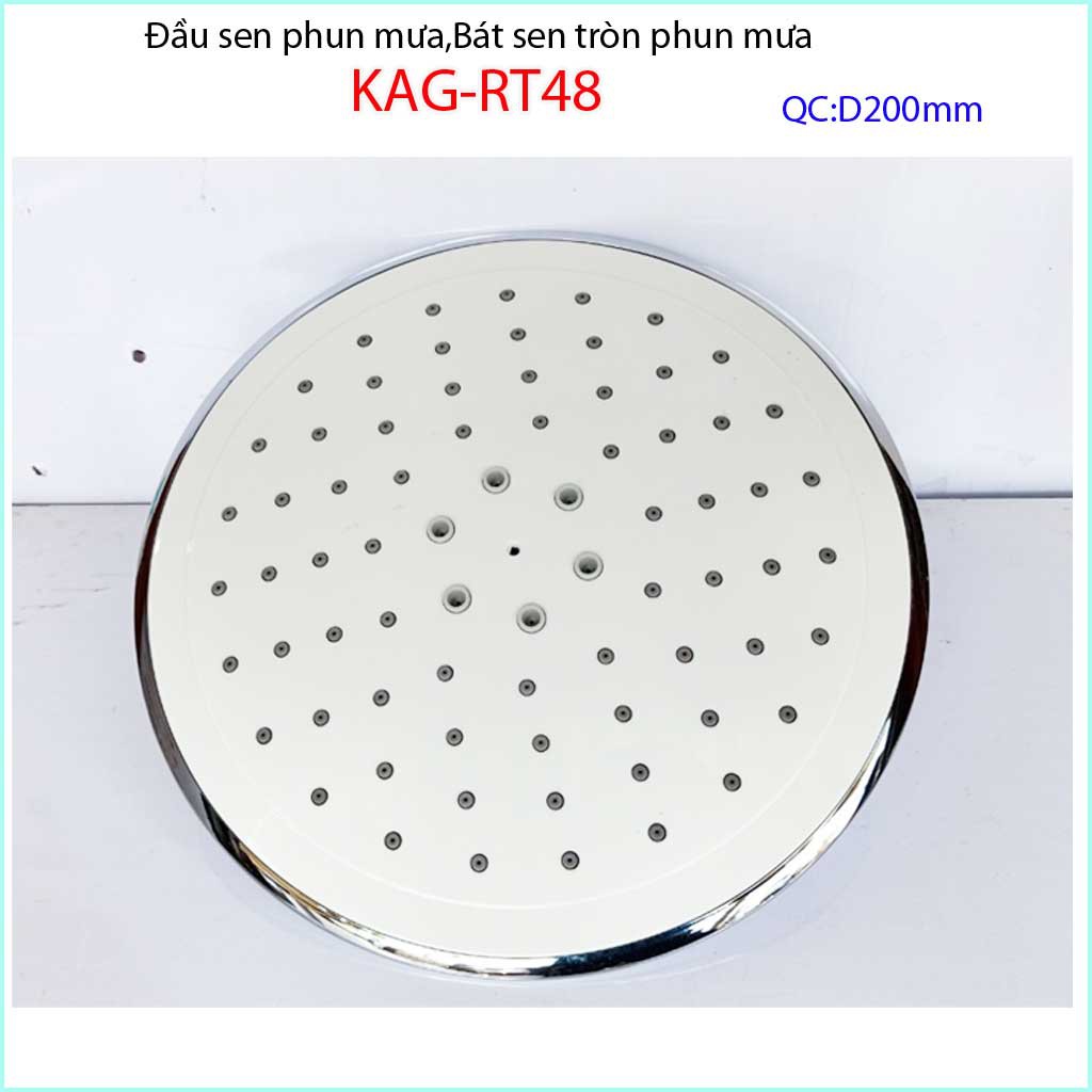 Đầu sen phun mưa, bát sen tắm phun mưa, bát sen tắm đứng KAG-RT48.1Đầu sen phun mưa, bát sen tắm phun mưa KAG-RT48 được sản xuất bởi nhựa ABS mạ chrome sáng bóng, mặt phun mưa làm bằng cao su đàn hồi cao cấp dễ vệ sinh, tạo áp lực phun mưa mạnh hơn