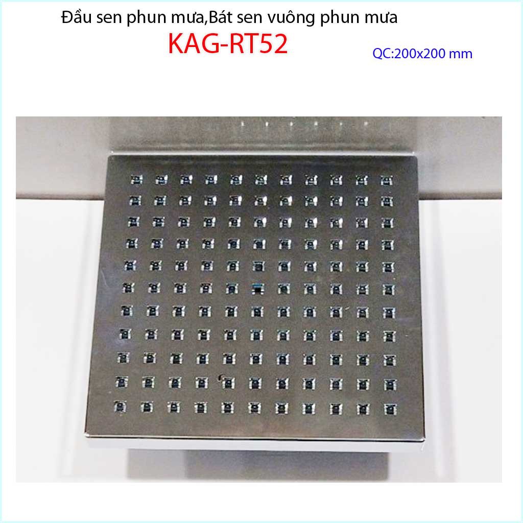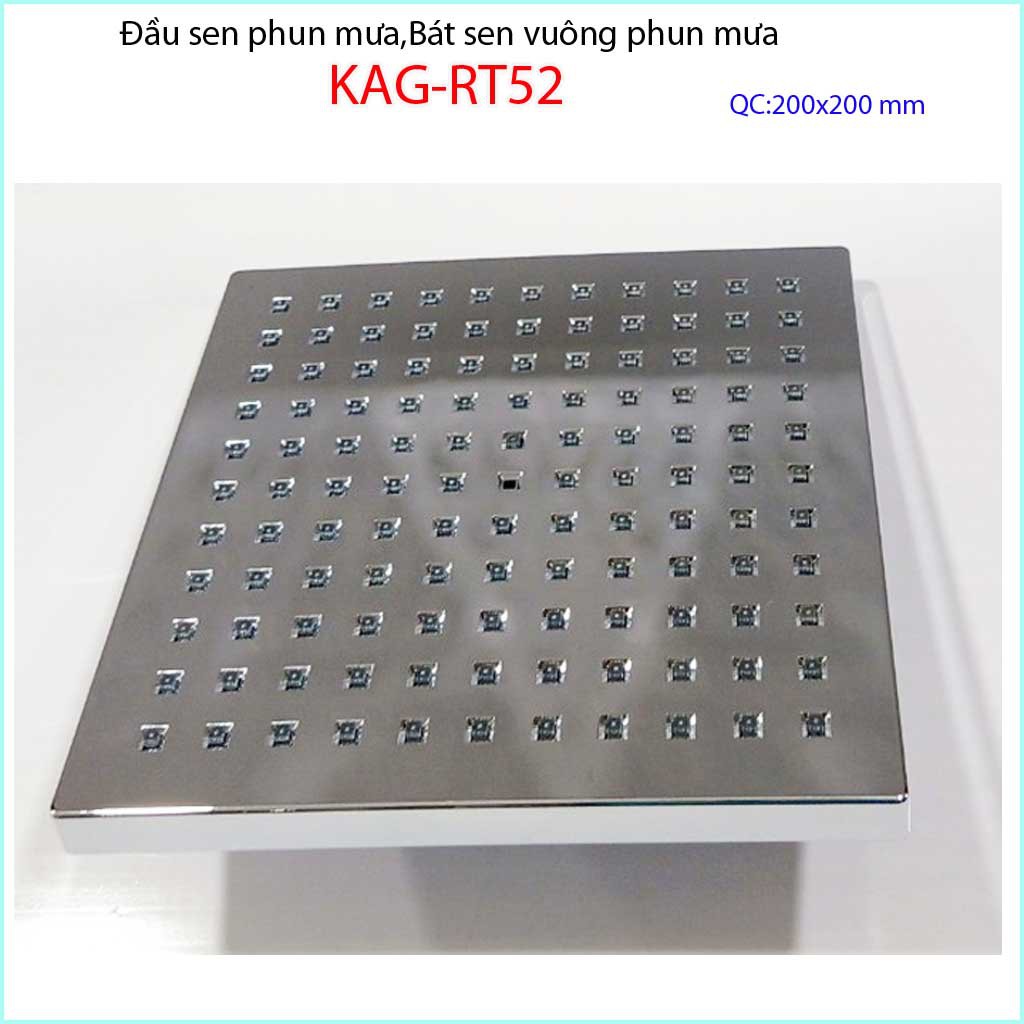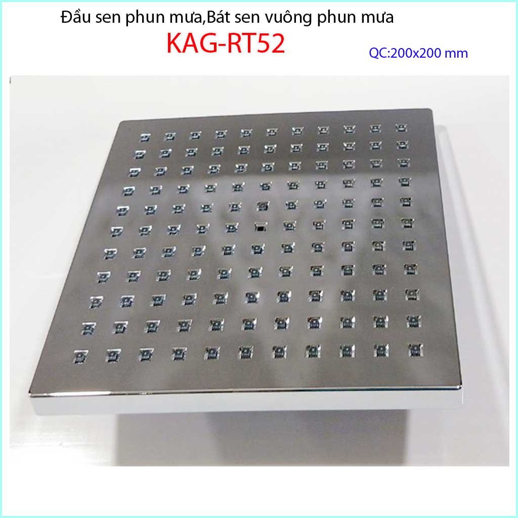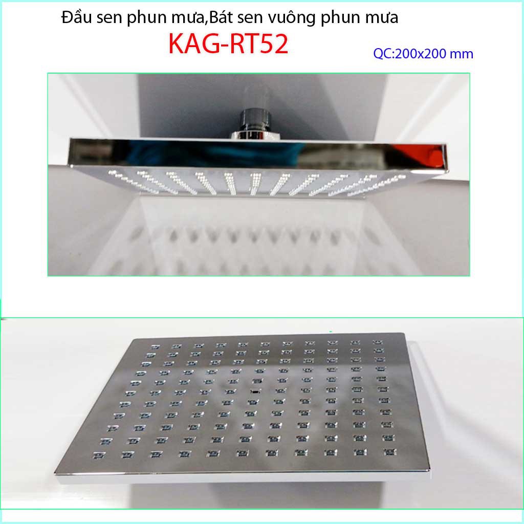 Đầu sen phun mưa, bát sen tắm phun mưa, bát sen tắm đứng KAG-RT52Đầu sen phun mưa, bát sen tắm phun mưa KAG-RT52 được sản xuất bởi nhựa ABS mạ chrome sáng bóng, mặt phun mưa làm bằng cao su đàn hồi cao cấp dễ vệ sinh, tạo áp lực phun mưa mạnh hơn