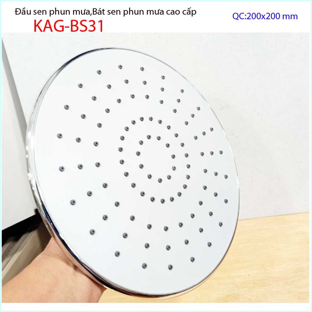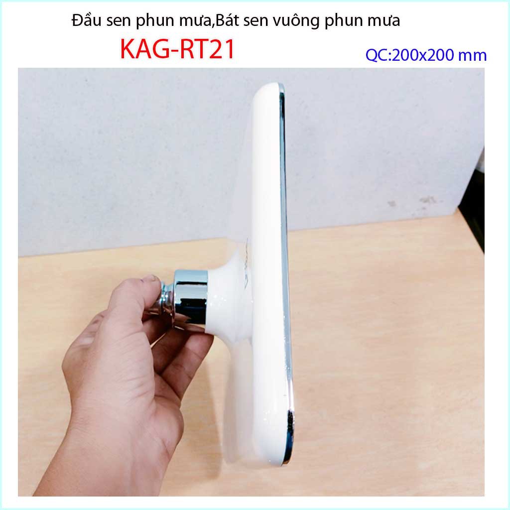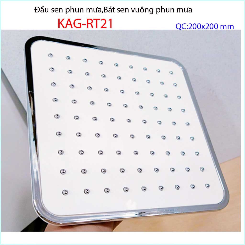 Đầu sen phun mưa, bát sen tắm phun mưa vuông 20x20cm- tròn D20cm, bát sen tắm đứng KAG-RT21-BS31Đầu sen phun mưa, bát sen tắm phun mưa KAG-RT21 được sản xuất bởi nhựa ABS màu trắng, mặt phun mưa làm bằng nhựa cao cấp dễ vệ sinh, màu xám bạc thời trang trong nhà tắm