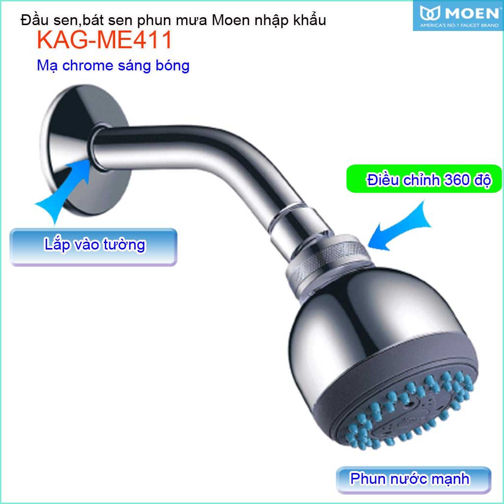 Đầu sen phun mưa Moen, bộ đầu sen âm tường KAG-ME411Chất liệu: Đầu sen phun mưa Moen, bộ đầu sen âm tường KAG-ME411 nhập khẩu nguyên chiếc 100% từ nhá máy sản xuất của tập đoàn MOEN, thương hiệu hàng đầu của American, Vòi MOEN đạt chuẩn chất lượng cao đáp ứng mọi yêu cầu của các khách hàng trên toàn thế gới.