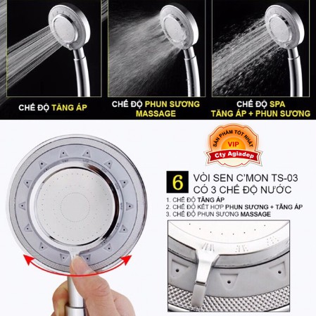 Giới thiệu Đầu sen tắm tăng áp bóng đẹp X1 - 3 chế độ phun (phun nước mạnh, vừa, nhẹ) - Loại tốt tráng bạc