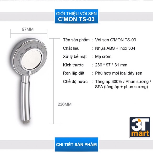 Giới thiệu Đầu sen tắm tăng áp bóng đẹp X1 - 3 chế độ phun (phun nước mạnh - nhẹ) - loại tốt tráng bạc
