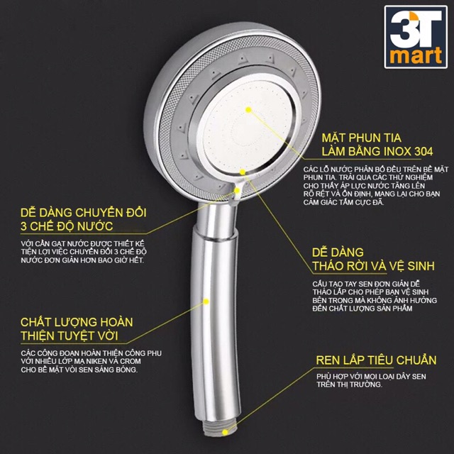 Đầu sen tắm tăng áp bóng đẹp X1 - 3 chế độ phun (phun nước mạnh - nhẹ) - loại tốt tráng bạc
