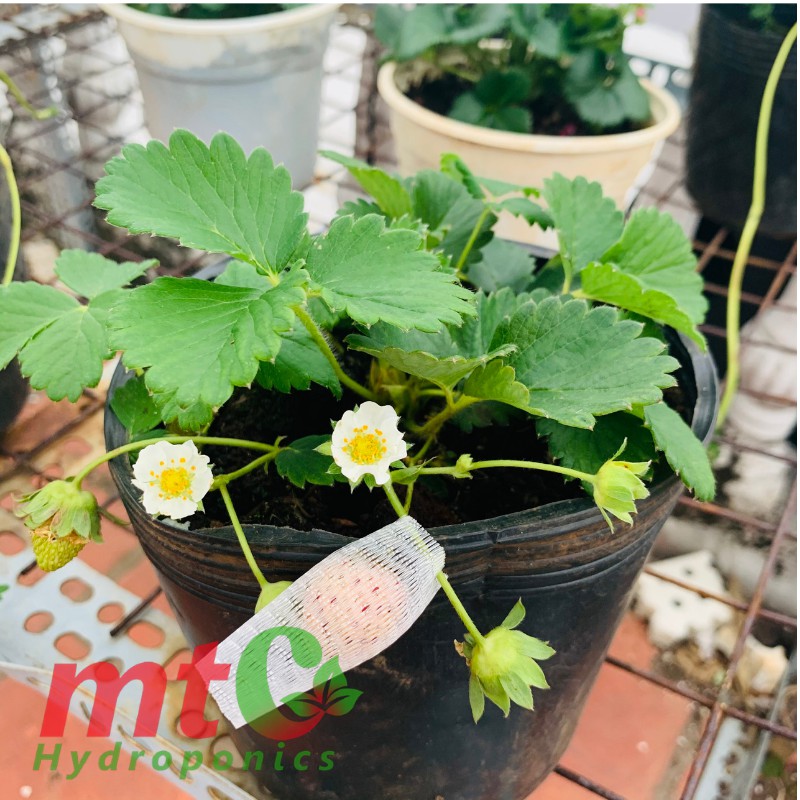 Cây Dâu Tây Chịu Nhiệt - Chậu trồng dâu cấy mô ổn định, đã ra hoa và quả