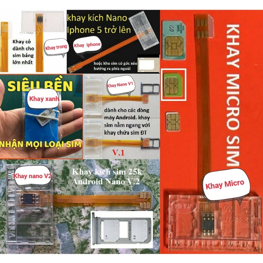 5. khay nano android V2 dùng cho các loại smarphone androi 2 sim dùng chung 1 khay