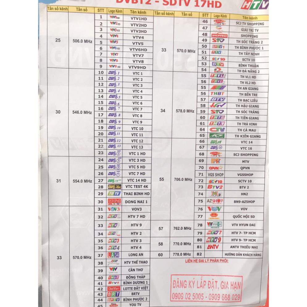 Các kênh đầu thu DVB T2 HKD MS 01-T2 thu được (Trên 50 kênh không trùng nhau)