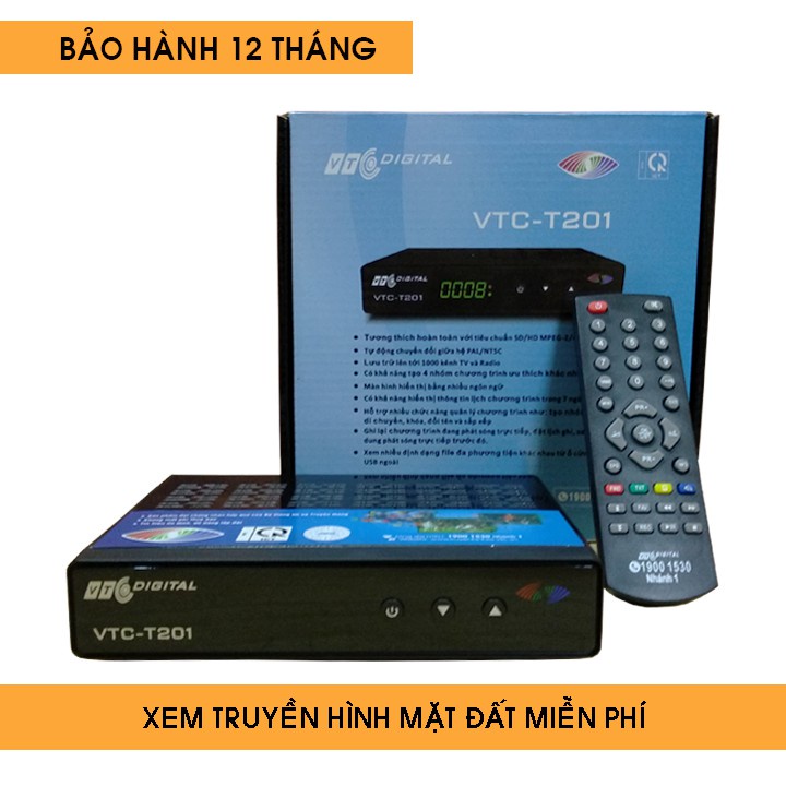 Đầu thu truyền hình số mặt đất DVB T2 VTC T201 Đầy đủ phụ kiện đi kèm.Không mất phí thuê bao hàng tháng, không cần kết nối internet