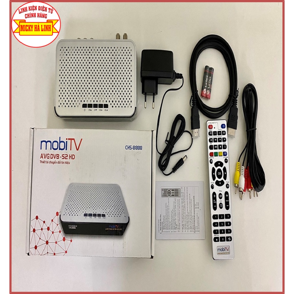Bộ DTH MOBITV S2 có tặng kèm tài khoản 180,000 CHI TIẾT SẢN PHẨM MOBITV DTH Đầu Thu DVB S2 HD đầu thu kỹ thuật số mobi tivi DTH hàng chinh hãng Bảo hành trọn đời đầu thu Bộ thiết bị gồm 1 đầu thu DVB S2 HD 1 romoter 1 dây HD 1.4 1 nguồn 12V 1A 1 dây AV 3.5 ra 3 đầu AV 1 cặp pin 3A 1 tài khoản 180,000 TẶNG KÈM chú ý : không phụ kiện ,chân chảo , LNB , DÂY 20M.ĐẦU THU DTH MOBITV MIỄN PHÍ gần 100 KÊNH Đầu thu truyền hình MobiTV là đầu thu HD cho phép xem hình ảnh các kênh HD siêu nét với các ưu điểm – Là Truyền Hình VỆ TINH, cung cấp độ nét HD, Lắp đặt dễ dàng, lắp được tất cả mọi nơi trên cả nước và các nước lân cận kể cả các khu vực mà các truyền hình khác không lắp được. -Truyền Hình MobiTV khắc phục được tất cả các nhược điểm của các truyền hình DVB T khác từ độ nét đến độ ổn định -, hay lắp đặt lại, -Tiết kiệm điện năng (công suất tiêu thu lớn nhất là 8W). - Chất lượng âm thanh – hình cảnh sắc nét. - Giao diện bằng Tiếng Việt rõ ràng. Với gói miễn phí gần 100 kênh( gói 0 đồng/tháng) quý khách hàng chỉ cần bỏ tiền mua thiết bị ban đầu. Hàng tháng quý khách không phải mất tiền cước phí vẫn có thể xem gần 100 kênh . Khi có nhu cầu quý khách nạp tiền có thể xem them các kênh của gói cơ bản ,cao cấp mà không phải thay đổi thiết bị. - Sản phẩm được bảo hành trọn đời sử dụng - Các kênh cơ bản: VTV1 HD, VTV2 HD, VTV3 HD, VTV4, VtV5, VTV6 HD, VTV 7 , VTV8, VTV9 HD, VTC1 HD, VTC 3 HD, VTC7 ( To day) , VTC9, VOVTV HD, VTC14 HD, SCTV%, VTC 7, HTV7, Hà Nội, Thanh Hoá, , Thái Nguyên, Thái Bình, Quảng Ninh, Phú Thọ ,THVL1,2,3,4