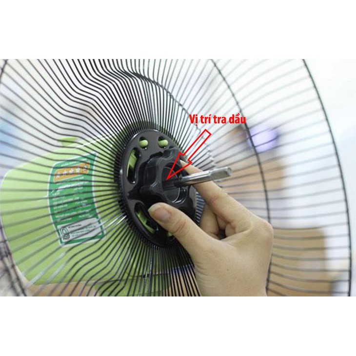 - Vị trí các bạn tra dầu bôi trơn quạt ở trục quay phía trước quạt hoặc có thể ở ngay sau cánh quạt. Các bạn chỉ cần thao tác nhỏ là tháo lồng quạt trước và cánh quạt ra là có thể tra dầu bôi trơn cho trục quạt được. Có lưu ý nhỏ là các bạn không nên tra dầu bôi trơn nhiều một lúc có thể dầu nhiều chảy đến dây đồng gây cháy chập. Mỗi lần tra dầu bôi trơn khoảng 3 đến 5 giọt nhỏ là đủ.