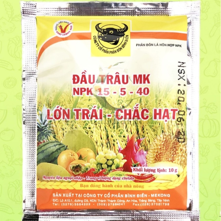 Giới thiệu Đầu trâu MK NPK 15-5-40 10gram Phân bón lá đầu trâu giúp lớn trái chắc hạt