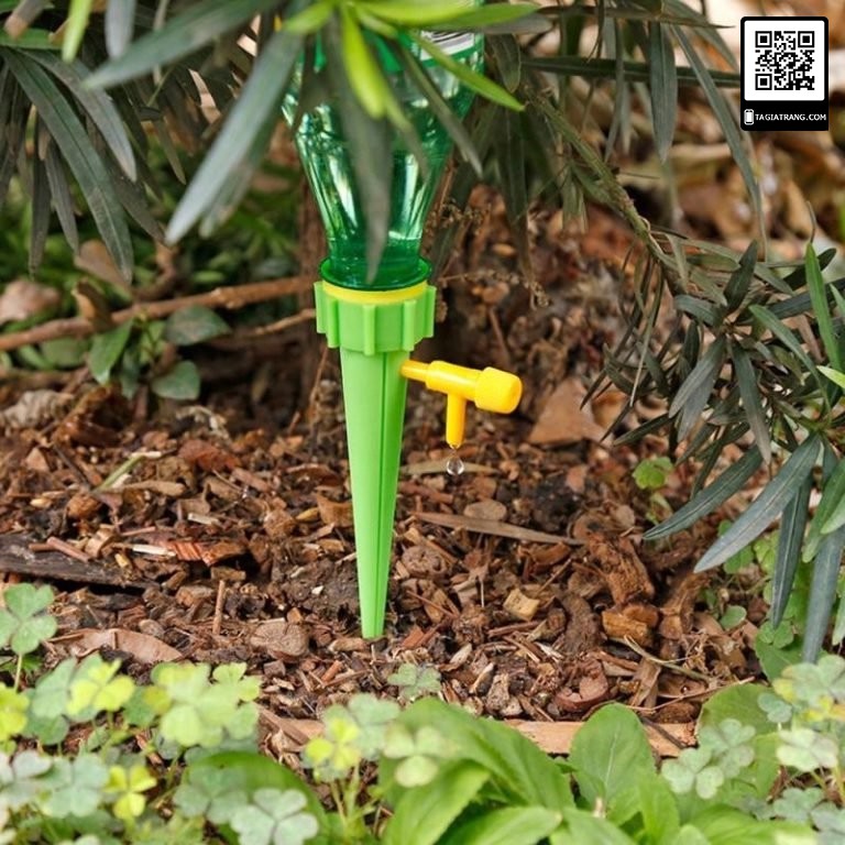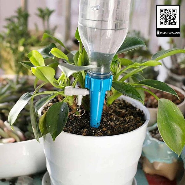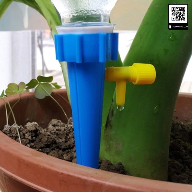 Chỉ cần một 1 chai Pepsi hoặc Coca 1,5lit nước, bạn lắp vào đầu nắp tưới, còn đầu kia cắm vào chậu hoa, rau là nước sẽ được từ từ tưới ẩm đều cho bạn thông qua cơ chế tràn nước, thiết bị có kèm lẫy khóa nhựa giúp bạn điều khiển lưu lượng nước và có thể khóa được nước chảy ra.....