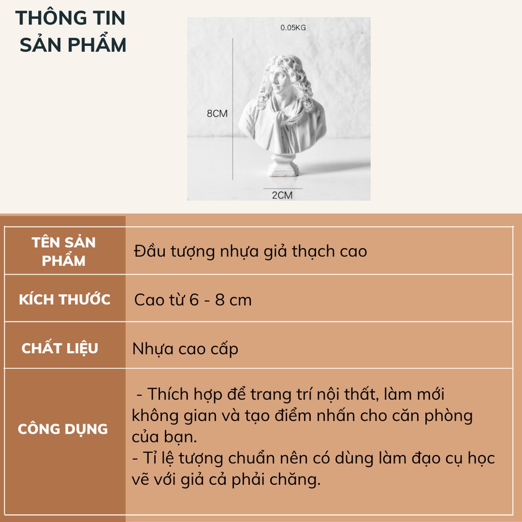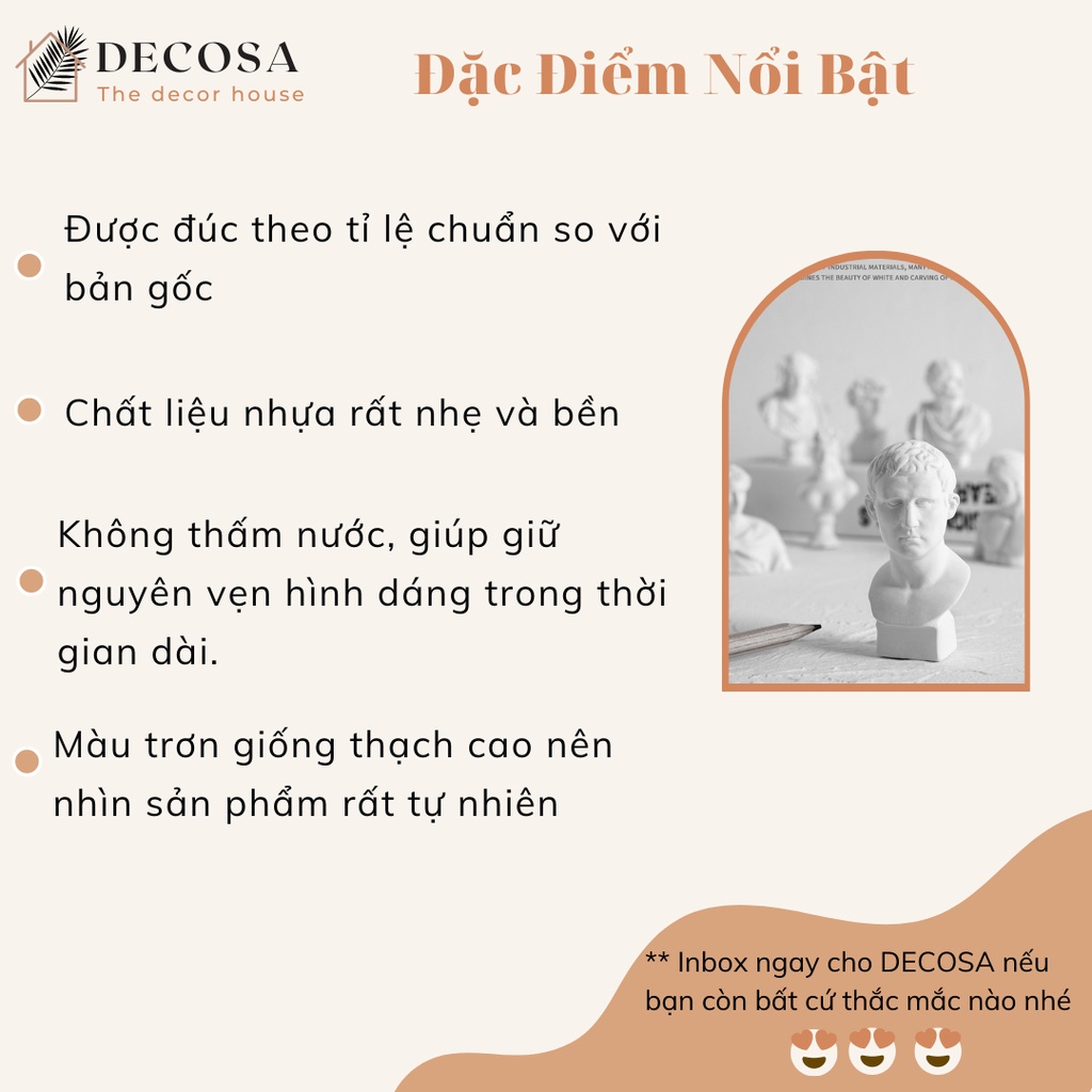 THÔNG TIN SẢN PHẨMĐầu tượng nhựa thạch cao mini tỉ lệ chuẩn trang trí nhà cửa DECOSA