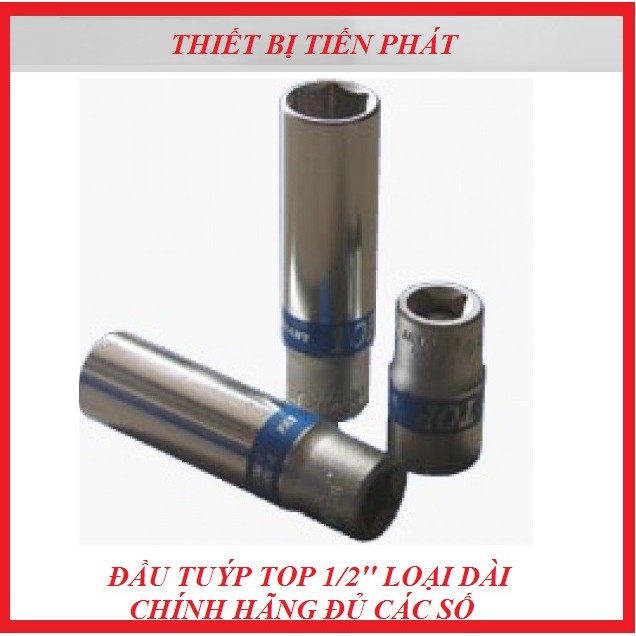 ĐẦU TUÝP 1/2 TOP 6 CẠNH LOẠI DÀI NHẬP KHẨU TRỰC TIẾP CHÍNH HÃNGĐầu Tuýp, Bulong, Đầu Khẩu Hãng TOP, 6 Cạnh, 1/2'' Dài 75mm Full Size 8mm - 32mm (Chính Hãng)