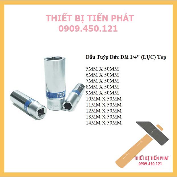 ĐẦU TUÝP 1/4'' TOP 6 CẠNH LOẠI DÀI NHẬP KHẨU TRỰC TIẾP CHÍNH HÃNGĐầu Tuýp, Bulong, Đầu Khẩu Hãng TOP 6 Cạnh 1/4'' Dài 50mm Full Size Từ 5mm - 14mm (Chính Hãng)