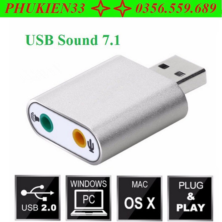 USB Sound card 7.1 mang đến cho máy tính card âm thanh 7.1 giúp tăng chất lượng âm thanh vượt trội so với loại 2.1 và 5.1Chất liệu nhôm cao cấp rất bền chống chịu va đập