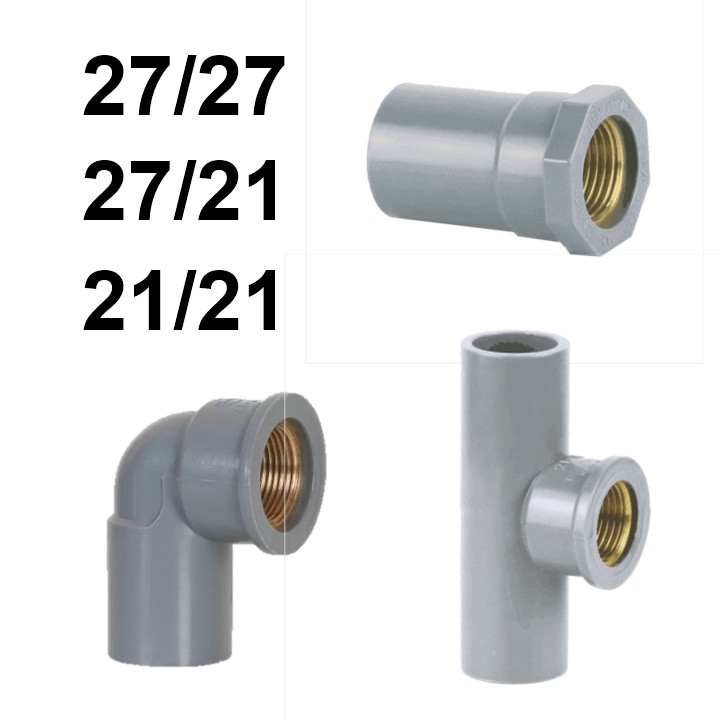 Giới thiệu ( Đầu vào 27 và 21 ) Tê 90 Ren Đồng, Nối thẳng Ren Đồng, Nối Góc 90 Ren Đồng 27/27, 27/21, 21/21