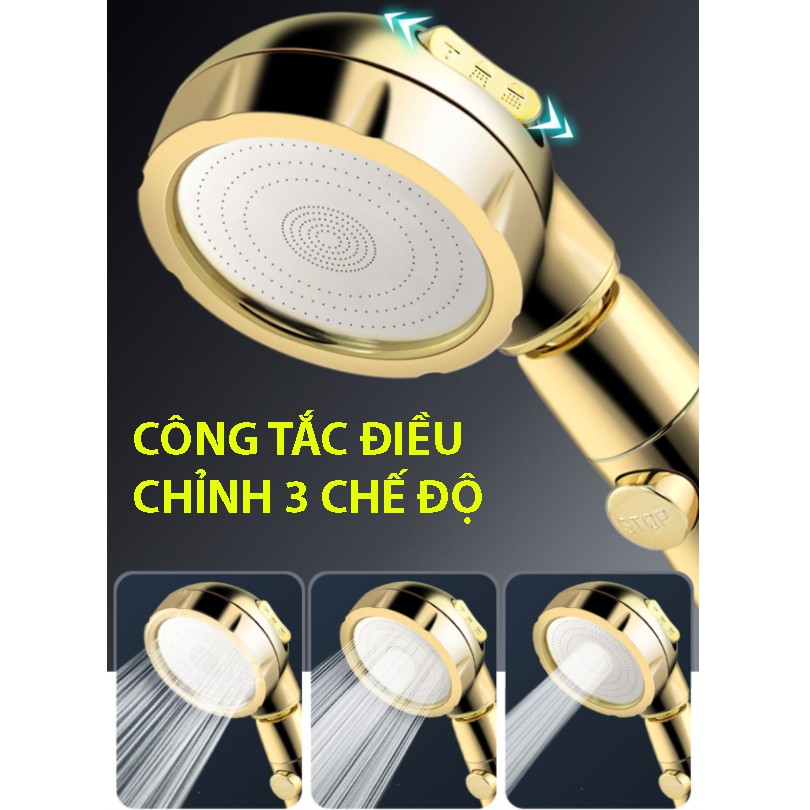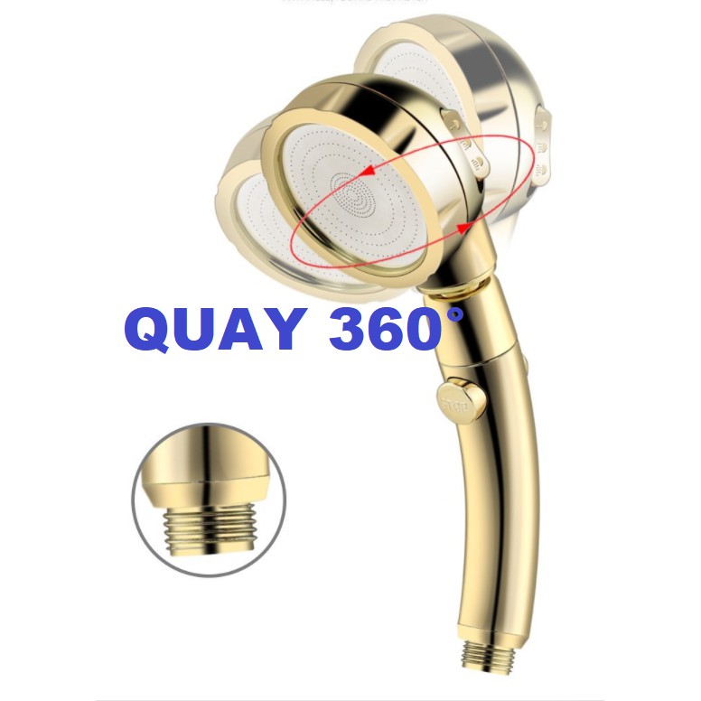 Đầu Vòi Hoa Sen Mạ Vàng Cao Cấp, 3 Chế Độ Nước Và Xoay Được 360°