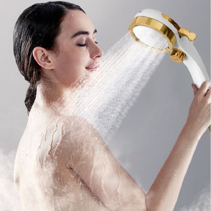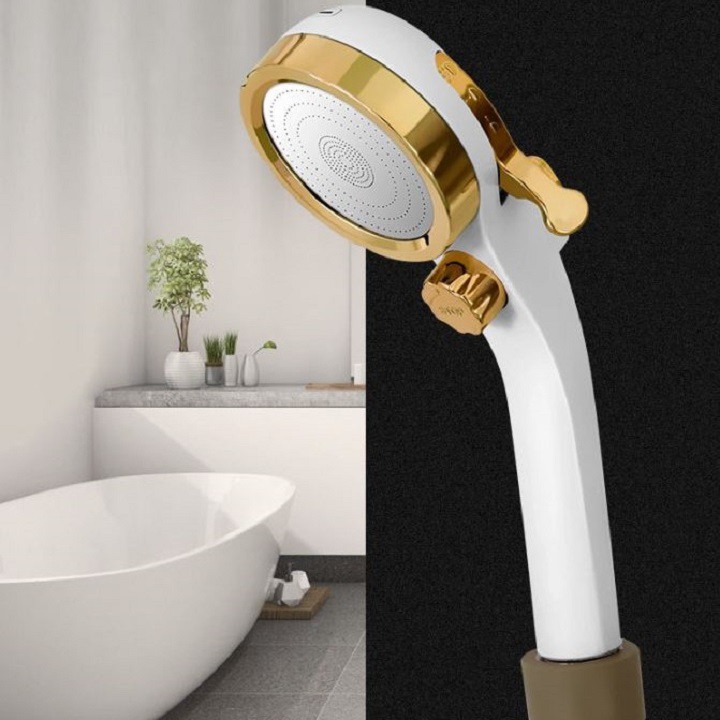 Đầu vòi hoa sen tăng áp viền vàng 3 chế độ cao cấp