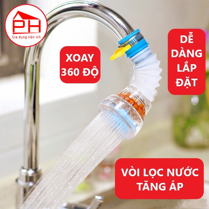 Giới thiệu ĐẦU VÒI LỌC NƯỚC tăng áp xoay 360 độ lắp bồn rửa chén bát (Giao mầu ngẫu nhiên) - Gia dụng Phước Hòa