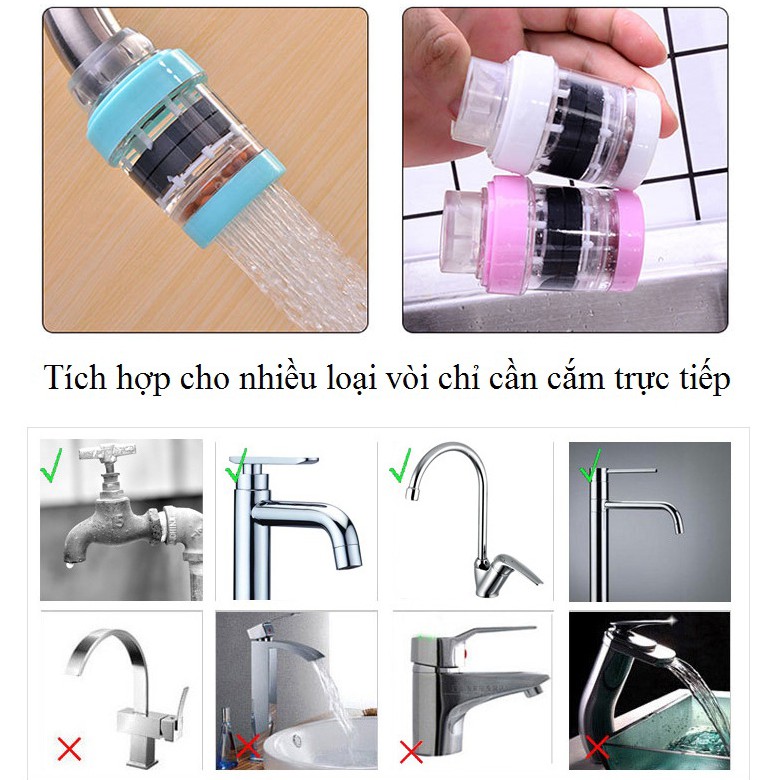 - Bộ đầu lọc nước từ vòi hình dáng nhỏ gọn, dễ dàng lắp đặt, tương thích với vòi nước có đường kính 16-17mm.