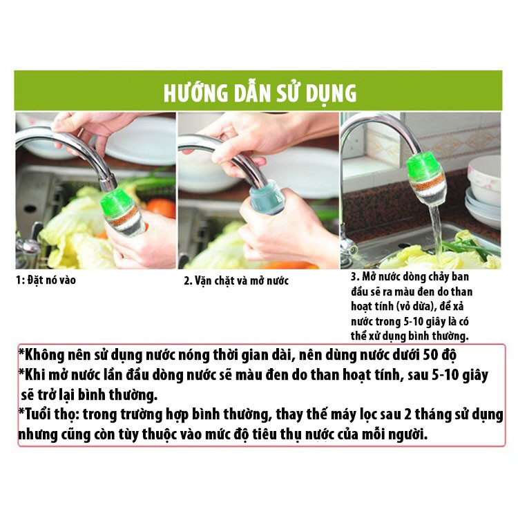 Đầu vòi lọc sạch nước than hoạt tính Đầu Lọc Nước Trực Tiếp Tại Vòi 5 Tầng An Toàn