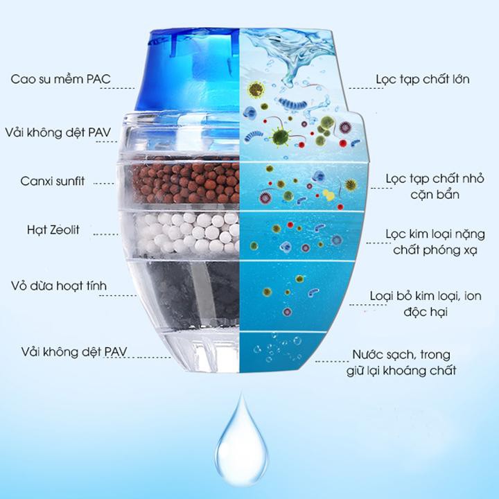 Giới thiệu Đầu vòi lọc sạch nước than hoạt tính Đầu Lọc Nước Trực Tiếp Tại Vòi 5 Tầng An Toàn