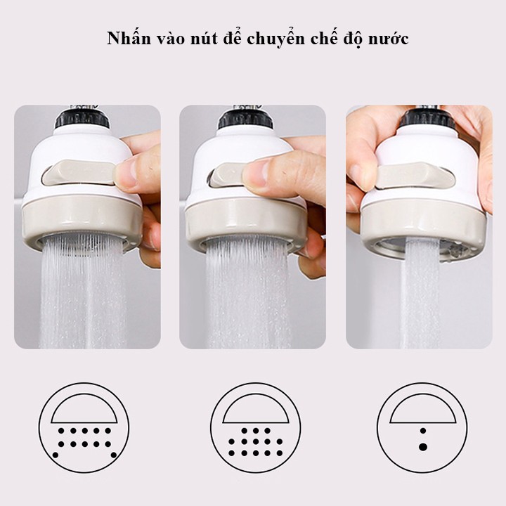 - Điều chỉnh 360 dễ dàng với chế độ nước giúp thuận tiện khi sử dụng đầu chuyển tiếp phù hợp với phần lớn vòi nước tiêu chuẩn của các nhà sản xuất.