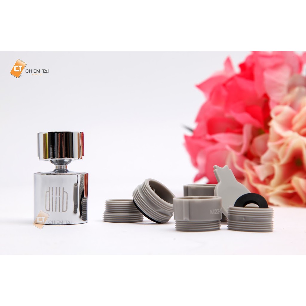 Đầy vòi tăng áp DiiiB được tích hợp trục chuyển đổi với kích thước khá nhỏ chỉ 24mm, nhưng cho khả năng điều chỉnh góc nước 360º theo mọi hướng, tăng phạm vi làm sạch, dễ dàng rửa và làm sạch vật dụng lớn như chảo, nồi,... Đầu vòi cố định, nước chảy nhanh cùng khả xoay góc rộng giúp quá trình rửa chén và sử dụng nước của bạn nhanh chóng và đơn giản hơn.