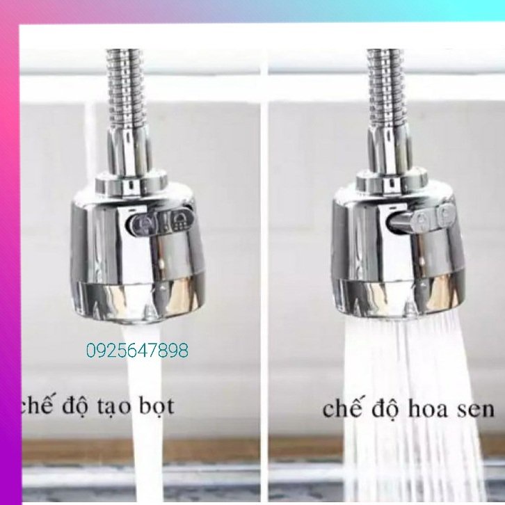 - Đầu vòi xoay 360 độ, thiết kế thông minh gồm 2 chế độ phun sủi bọt và phun mưa giúp dòng nước êm ái mà không bị bắn tung tóe , điều chỉnh dòng nước linh hoạt hoặc theo ý mình