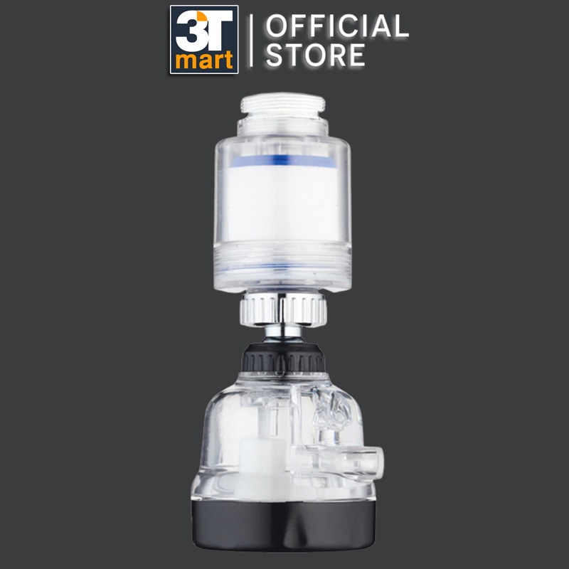 Sản phẩm gồm 2 phần: bộ lọc (lõi có thể thay mới) + đầu vòi tăng áp xoay 360 độ