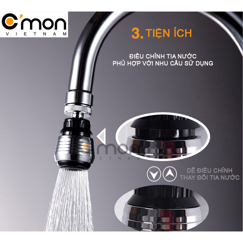 Nhà cửa & Đời sống > Dụng cụ & Thiết bị tiện ích > Chậu rửa & vòi nước || Đầu vòi rửa bát chén tăng áp điều hướng 360 độ với 2 chế độ nước Cmon DV-01Còn hàng
