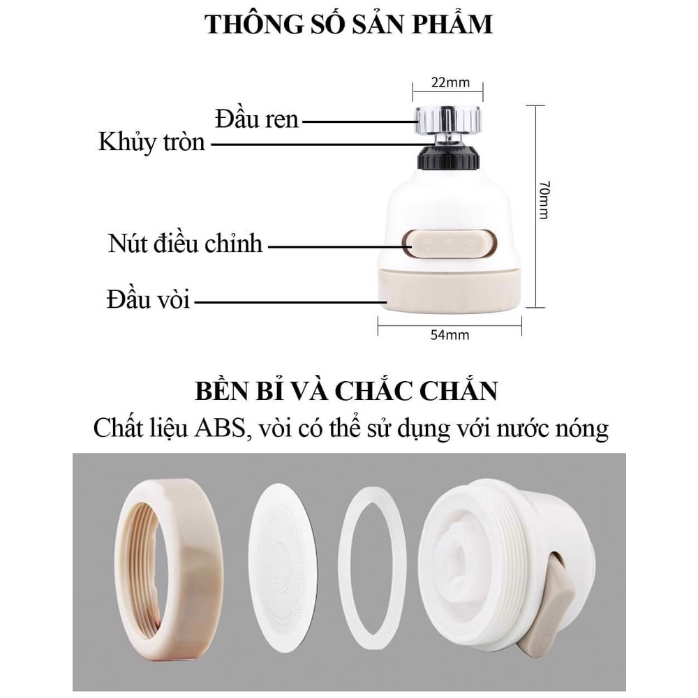 - Đầu vòi rửa chén xoay 360 độ thuận tiện