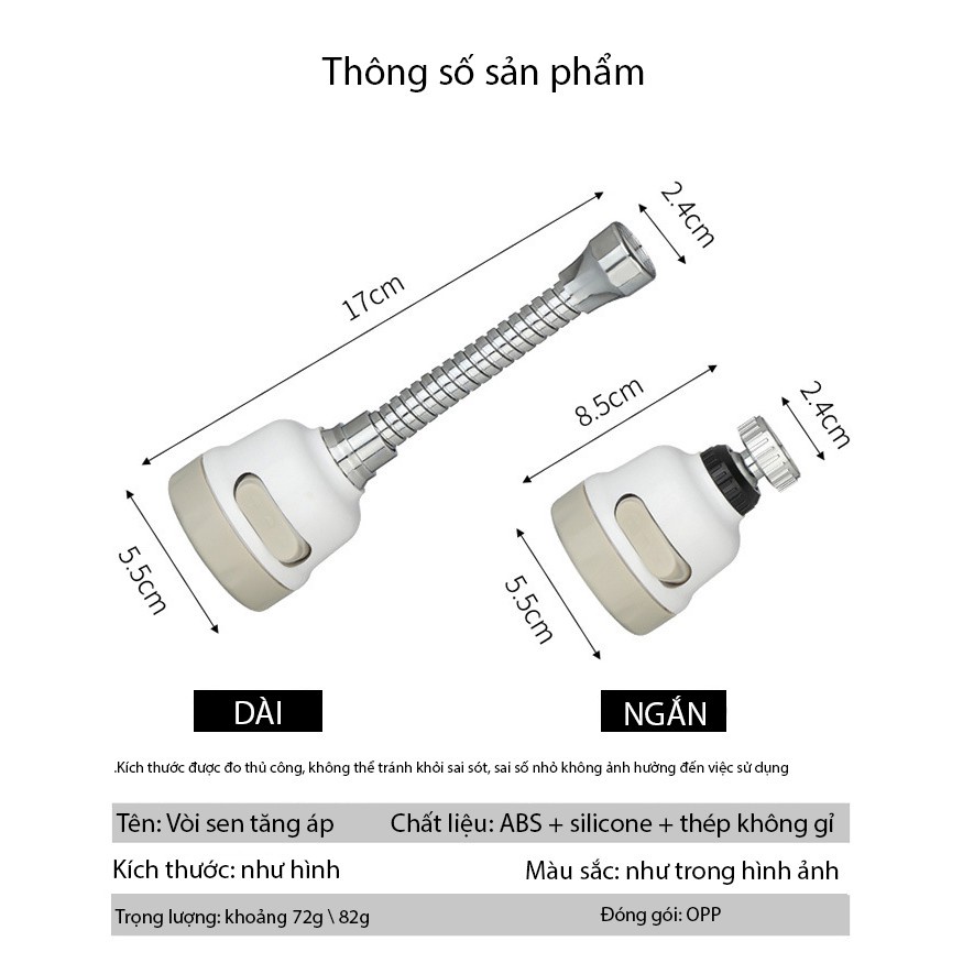 Tăng áp lực nước khi sử dụngCó khả năng điều hướng 360 độ, thuận tiện khi sử dụng
