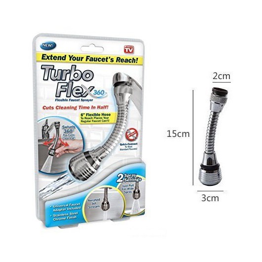 Nhà cửa & Đời sống > Dụng cụ & Thiết bị tiện ích > Chậu rửa & vòi nước || Đầu Vòi Rửa Bát Tăng Áp Turbo Flex Xoay 360 Độ, Inox Không Gỉ 2 Chế Độ Nước Tiện LợiCòn hàng