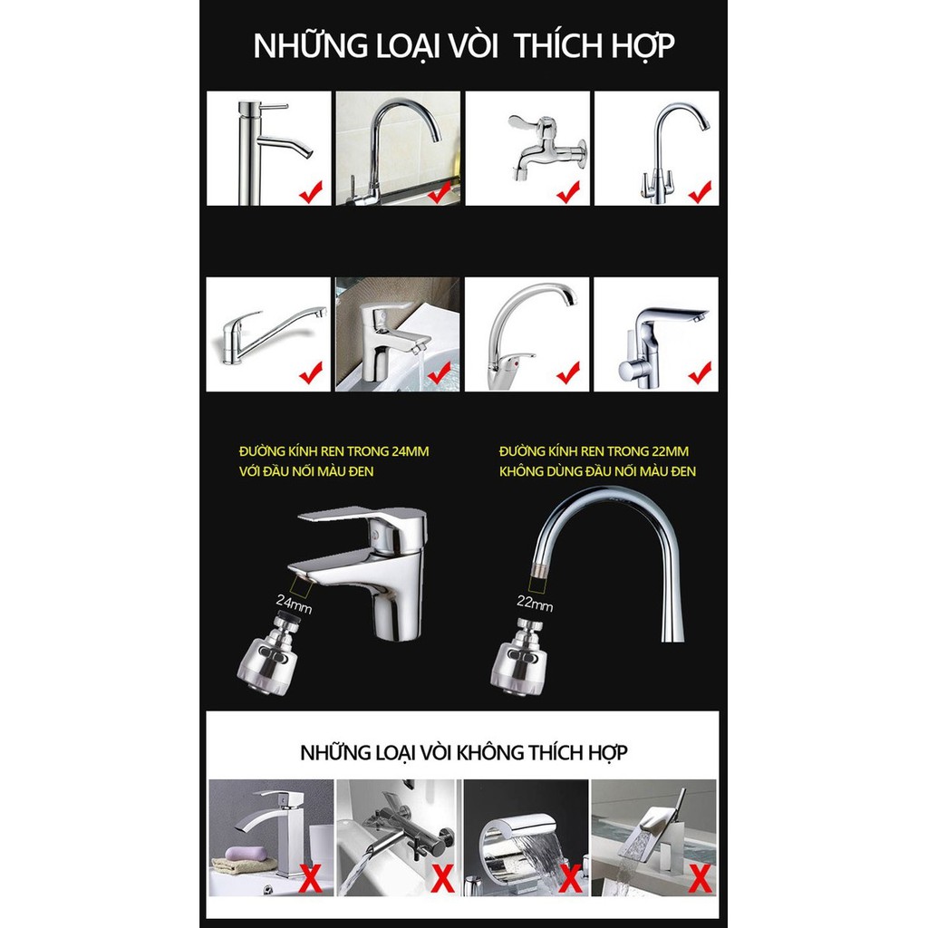 * Sản phẩm lắp đặt dễ dàng và phù hợp hầu hết các loại vòi có trên thị trường có ren trong 24 hoặc ren ngoài 21