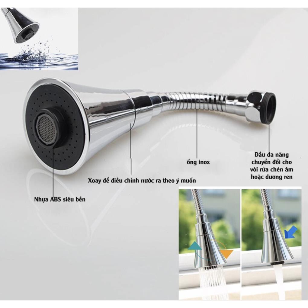 Đầu Vòi rửa chén Tăng Áp Xoay 2 chế độ - xoay rất dễ dàng, bông tăng áp rửa chén