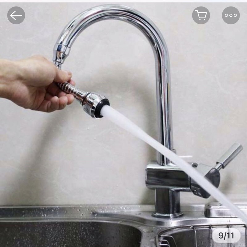 ❷ Dụng cụ nối vòi nước được thiết kế dạng vòi sen với những lỗ phun siêu nhỏ giúp lực phun nước mạnh hơn và tiết kiệm nước hơn đảm bảo hiệu quả thiết thực và tiết kiệm được một lượng nước tối đa. Vòi nước xoay 360 độ về nhiều hướng khác nhau giúp bạn thuận tiện hơn khi rửa chén bát, rau củ, thực phẩm,…hay dễ dàng hơn trong việc lau chùi bồn nước.