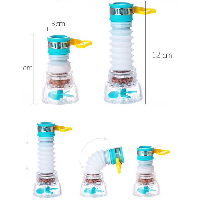 Đầu vòi rửa chén tiết kiệm nước xoay 360 độ. Đầu vòi xoay được giúp dễ dàng rửa sạch xung quanh bồn rửa. Dễ lắp đặt, thích hợp nhiều đầu vòi rửa chén, vòi rửa gắn tường hiện hữu. Có hạt lọc nước giúp lọc cặn bẩn. Có cánh quạt quay để dàn đều tia nước. Đầu vòi rửa có thể kéo dài hoặc thu lại khi cần, tối đa 10.5 cm. Thiết kế nhỏ gọn, thuận tiện sử dụng. Màu sắc: Hồng, Xanh dương, Xanh láĐầu vòi rửa chén tiết kiệm nước xoay 360 độ.