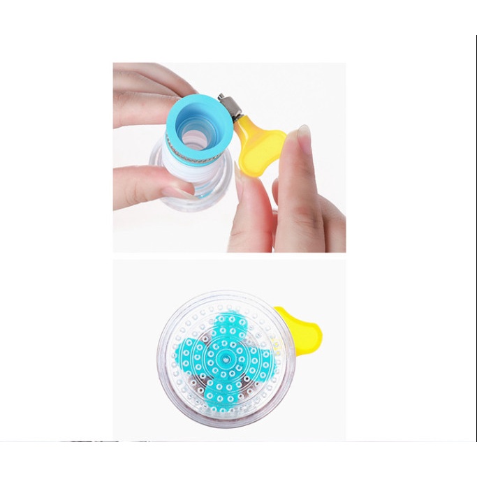 Đầu vòi rửa chén tiết kiệm nước xoay 360 độ. Đầu vòi xoay được giúp dễ dàng rửa sạch xung quanh bồn rửa. Dễ lắp đặt, thích hợp nhiều đầu vòi rửa chén, vòi rửa gắn tường hiện hữu. Có hạt lọc nước giúp lọc cặn bẩn. Có cánh quạt quay để dàn đều tia nước. Đầu vòi rửa có thể kéo dài hoặc thu lại khi cần, tối đa 10.5 cm. Thiết kế nhỏ gọn, thuận tiện sử dụng. Màu sắc: Hồng, Xanh dương, Xanh láĐầu vòi rửa chén tiết kiệm nước xoay 360 độ.