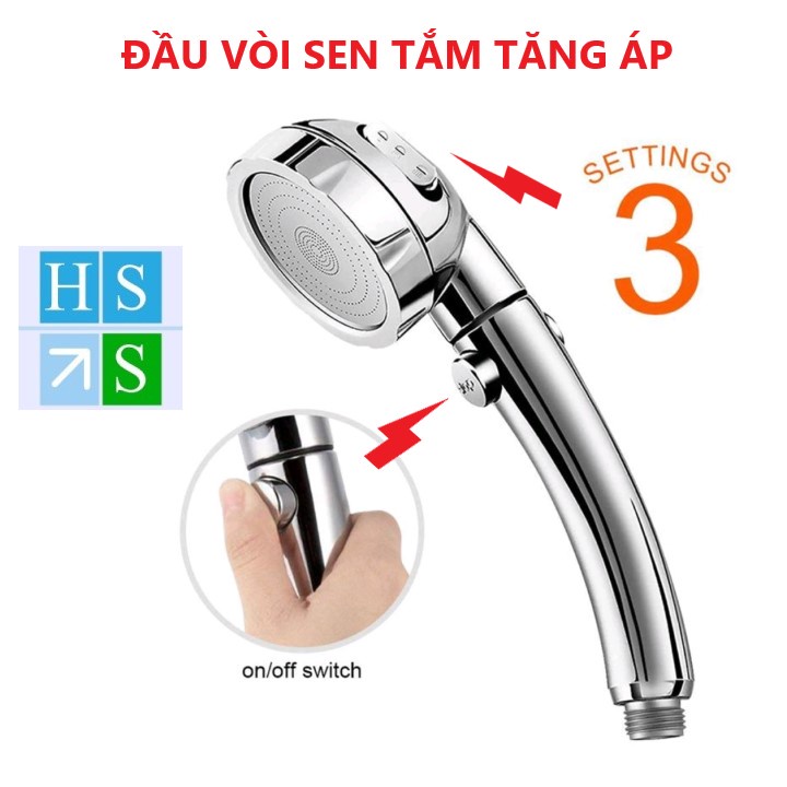 ĐẦU VÒI SEN tắm nóng lạnh cao cấp mạ CROM bát vòi tắm tăng áp kèm nút tắt mở với 03 chế độ nước - HS Shop Thủ Đức