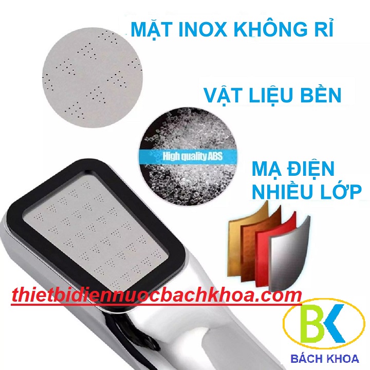 - Đầu vòi sen vuông Tăng áp 300 lỗ cao cấp (áp lực nước yếu sẽ không cải thiện được)