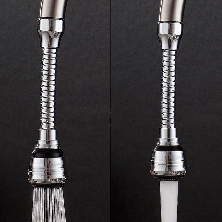 Đầu vòi tăng áp 2 chế độ xoay 360 độ thông minh tiết kiệm nước dài 18cm kèm đầu chuyển - QM0033- Đầu Vòi Xịt Nước Tăng Áp Cho Vòi Bồn Rửa 360 Mới thiết kế dạng vòi dùng để điều chỉnh dòng nước ở bồn rửa giúp bạn rửa chén bán, rau củ, thực phẩm… tiện lợi dễ dàng hơn. Chất liệu inox không gỉ, và với cấu trúc có thể uốn dẻo thông minh, chiếc vòi này thật sự đem đến cho người sử dụng dễ dàng biến vòi nước thông thường trở thành linh hoạt với nhiều hướng, ngoài ra vòi được thiết kế với 2 chế độ xả nước cho bạn lựa chọn đó là 1 chế độ phun với áp lực và 1 chế độ phun góc rộng.