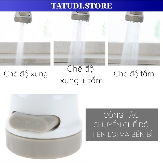 Đầu vòi tăng áp 360 độ, 3 chế độ phun cực mạnh rửa chén bát rau củ tiện lợitatudi.store