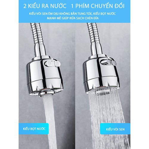 Giới thiệu Đầu vòi tăng áp cần lò xo Inox- kèm dây nối dài 18cm 360 độ kèm 2 chế độ nước