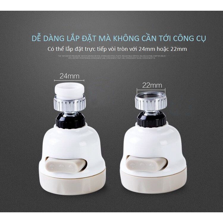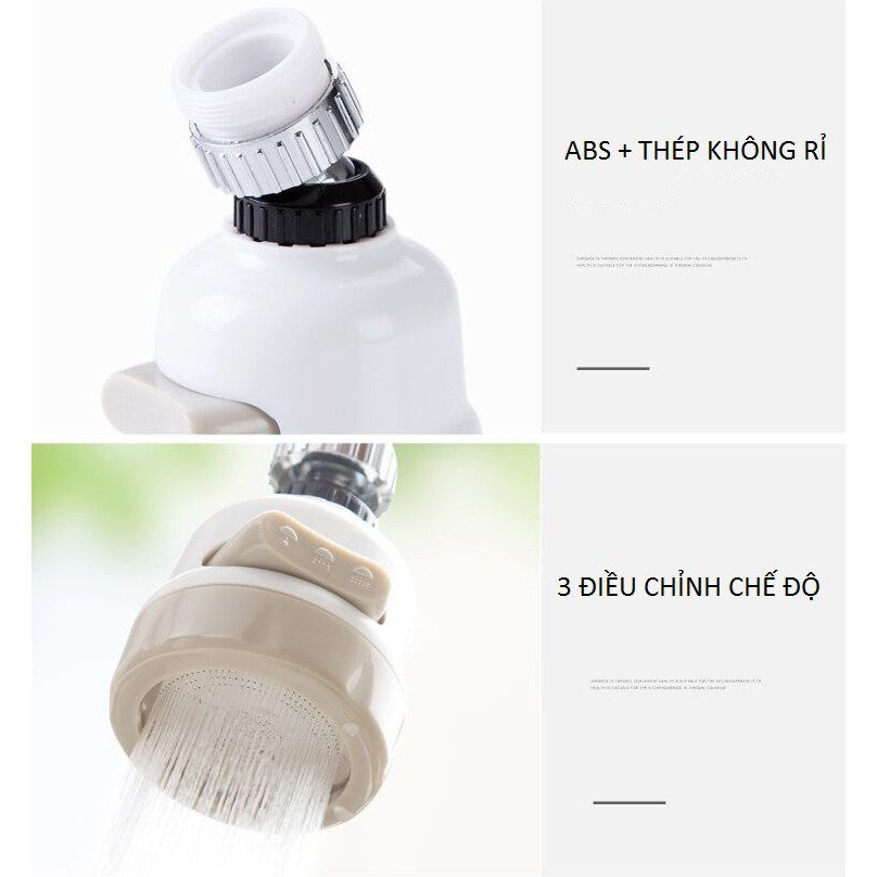 Tăng áp lực nước 300% so với các loại đầu vòi thông thườngĐầu vòi tăng áp điều hướng 360 độ 3 chế độ chảy tăng áp 300% so với đầu vòi thông thường, giúp dòng nước mạnh mẽ hơn. Sản phẩm giúp người dùng dễ dàng xả trôi bụi bẩn trên rau củ quả khi nấu ăn mà vẫn đảm bảo tiết kiệm nước tối đa.