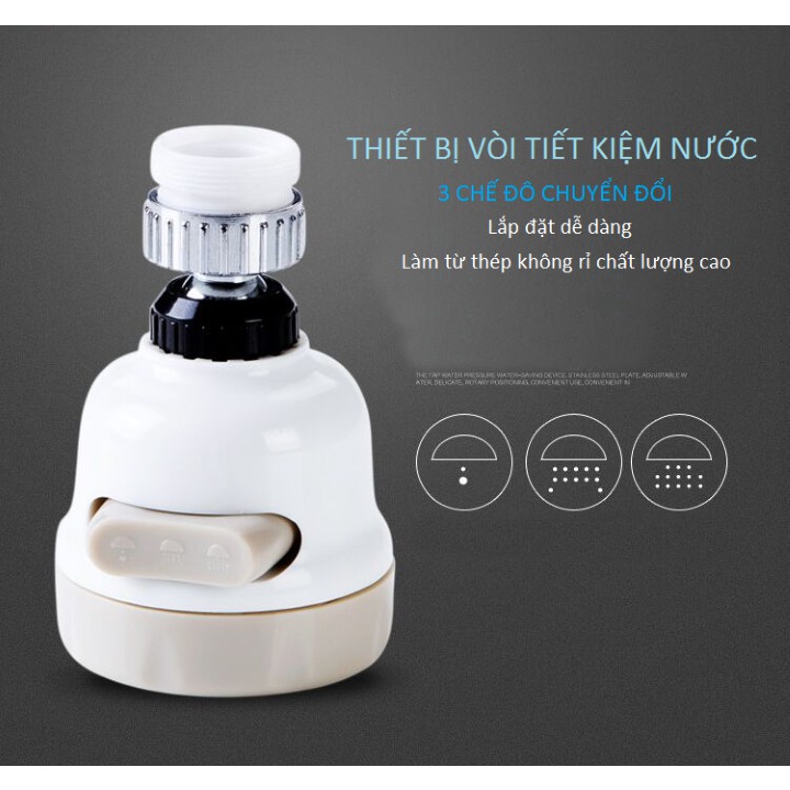 Đầu Vòi Tăng Áp Điều Hướng 360 Độ 3 Chế Độ Chảy Tăng Áp 300% So Với Đầu Vòi Thông Thường, Giúp Dòng Nước Mạnh Mẽ Hơn. Sản Phẩm Giúp Người Dùng Dễ Dàng Xả Trôi Bụi Bẩn Trên Rau Củ Quả Khi Nấu Ăn Mà Vẫn Đảm Bảo Tiết Kiệm Nước Tối Đa.