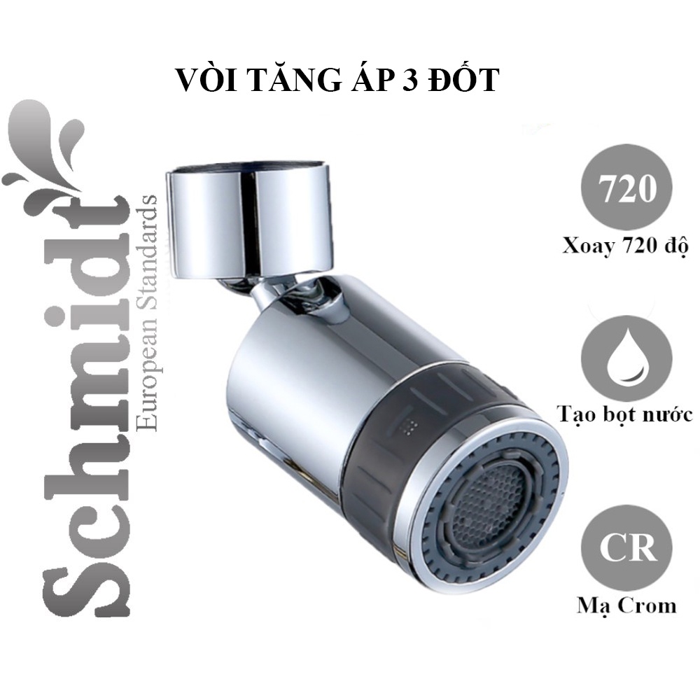 Mô tả sản phảm: Đầu Vòi Tăng Áp Schmidt Loại 3 Đốt Chế Độ Xoay 360 Độ