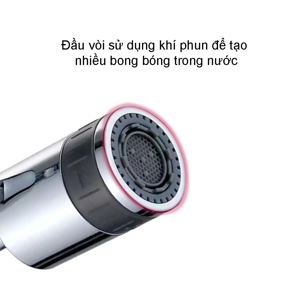 - Tăng áp (giúp phun nước mạnh hơn); tạo bọt; chống bắn; 2 chế độ phun nước, giúp tiết kiệm từ 30%-70% lượng nước so với vòi nước thông thường