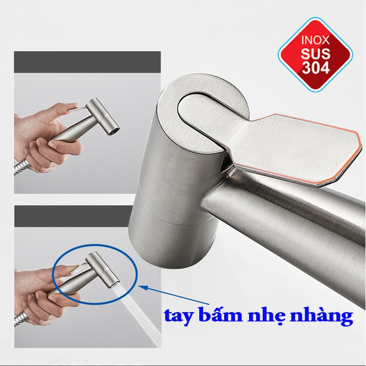Đầu vòi xịt cao cấp inox304 không gỉ sét, không nhiễm chì, dễ sử dụng, chịu lực lớn, bảo hành 1 năm