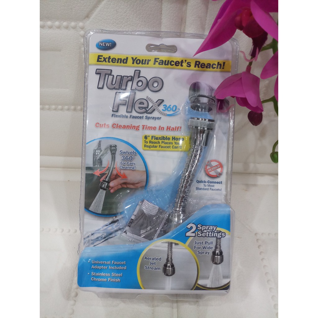1 Mô tả sản phẩmVòi nước rửa chén bát là thiết bị phổ biến, đóng vai trò vô cùng quan trọng trong mỗi gia đình. Nó không chỉ giúp ta lấy nước dễ dàng hơn mà còn thuận tiện trong công việc hàng ngày. Những với những vòi rửa bát quá ngắn thì sao đây. Rất khó để ta sử dụng trong cuộc sống hàng ngày nhưng bạn đừng lo vì đã có đầu vòi xịt nước tăng áp cho bồn rửa sẽ giúp bạn có thể kéo dài đầu vòi nước hơn, dễ dàng trong việc rửa ráy, rất tiện dụng. Đầu Vòi Xịt Nước Tăng Áp Cho Vòi Bồn Rửa Turbo Flex 360 Mới thiết kế dạng vòi sen dùng để điều chỉnh dòng nước ở bồn rửa giúp bạn rửa chén bán, rau củ, thực phẩm…